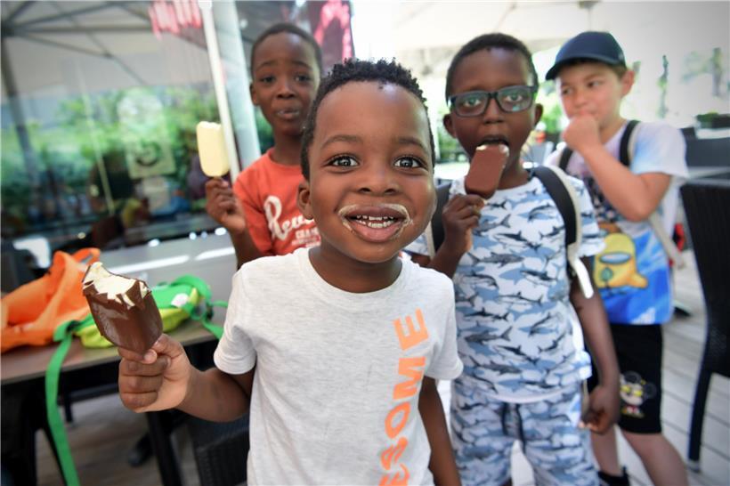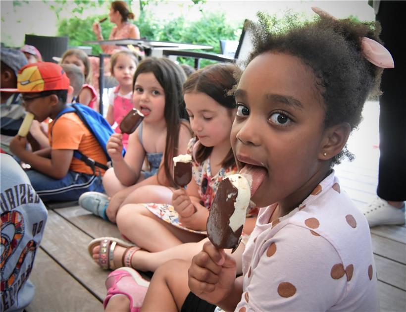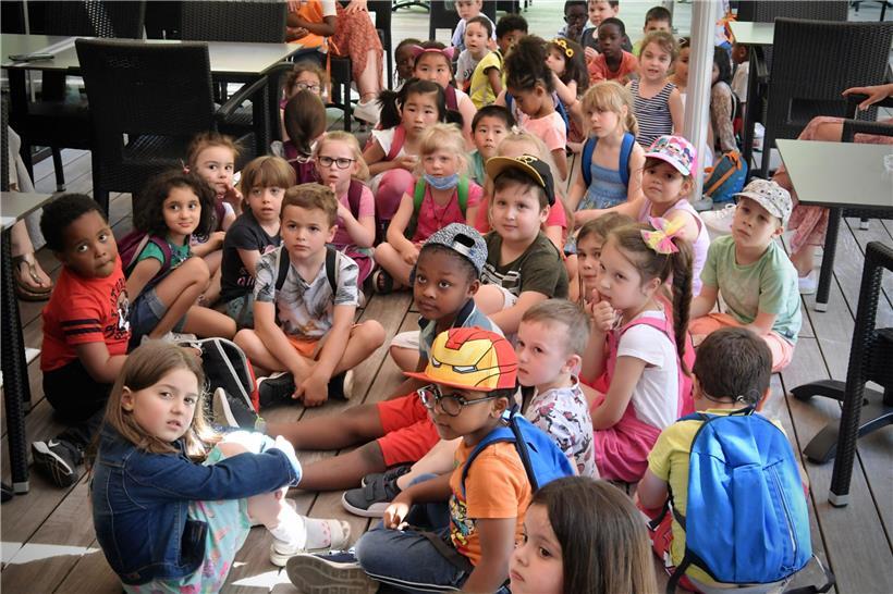 Am Freitagnachmittag war reichlich was los im Escher Schwimmbad. Rund 50 Kinder der Brill-Schule hatten sich angekündigt, um die von ihnen dekorierte neue Familien-Umkleidekabine einzuweihen. Es handelt sich dabei um die frühere Kabine für Behinderte, die quasi in zwei geteilt wurde und in Zukunft eine Familien- und eine Behindertenkabine beherbergen wird. Drei Klassen arbeiteten am Projekt. Erst in der Schule und dann vier Tage vor Ort, wobei das Malermaterial vom Schwimmbad zur Verfügung gestellt wurde. Am Freitag nun konnten sie ihre fertige Arbeit begutachten und wurden von den Verantwortlichen mit einem Eis belohnt, was bei den sommerlichen Temperaturen und kurz vor dem Wochenende ganz offensichtlich gut bei den jungen Grundschülern ankam.