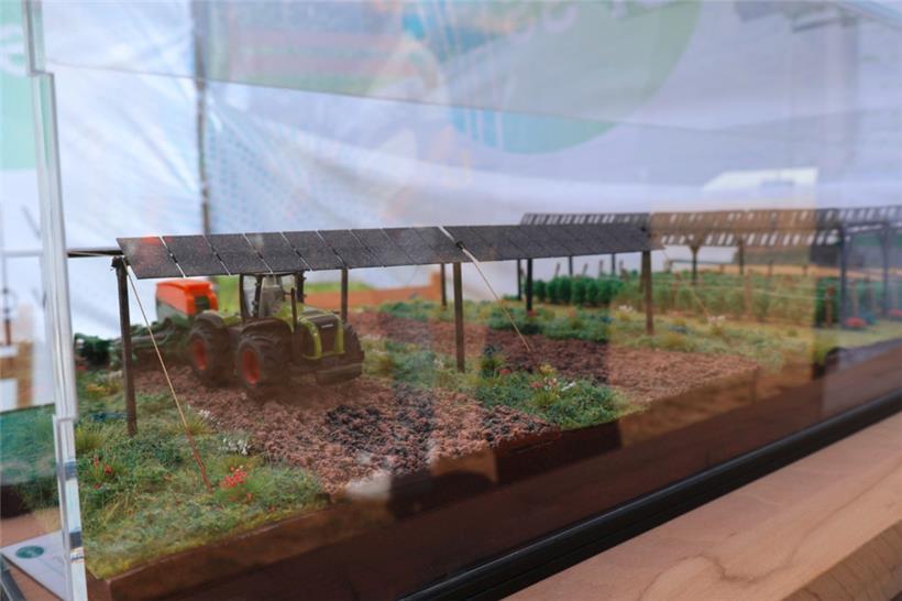 Spannend ist ebenfalls die speziell für die LUGA, zu der die FAE dieses Jahr parallel stattfindet, errichtete Agri-Fotovoltaik-Anlage (Agri-PV) von GPSS, kurz für Green Power Storage Solutions. Ganz anders als beim Stand der Wollspinnerinnen geht es hier nicht um Handarbeit, sondern die Kombination von erneuerbarer Stromproduktion und Landwirtschaft. 2021 gründeten Patrick und Michel Witte zusammen mit Philipp Fisch das Unternehmen, das aktuell eine Pilotanlage in Kehlen betreibt und bald eine weitere in Angelsberg in Betrieb nehmen wird.