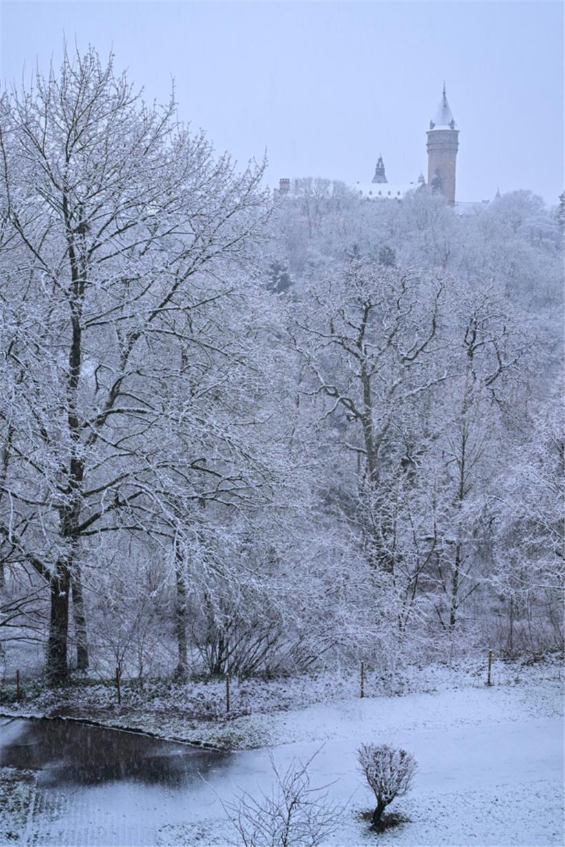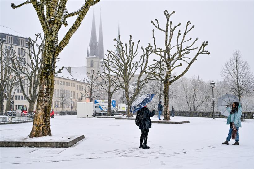 Winterliche Ansichten aus Luxemburg-Stadt. Schnee bedeckt die Dächer der Altstadt, die historischen Gebäude und die Grünflächen. Einige nutzen den Schnee zum Fotoshooting oder zum Spazierengehen. Am Mittwochnachmittag hat es in Luxemburg geschneit, in der Hauptstadt sind diese Aufnahmen entstanden.