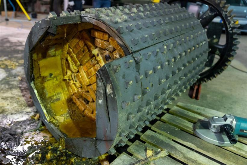 Am Donnerstag sei dann zunächst der Scanner des Zolls zum Einsatz gekommen. Da mit dessen Hilfe nicht definitiv geklärt werden konnte, ob sich Drogen in den Walzen befinden oder nicht, habe man „mit viel Schweiß und Muskelkraft“ die Maschine auseinandergebaut und eine Walze aufgebrochen. Der Einsatz sei „delikat“ gewesen. Nachdem ein etwa ein Zentimeter großes Loch in die Walze gebohrt wurde, konnte die Polizei im Inneren eine große Anzahl von Paketen erspähen, die ein weißes Pulver enthielten. Ein Drogenhund habe positiv angeschlagen und damit bestätigt, dass es sich dabei um Drogen handele.