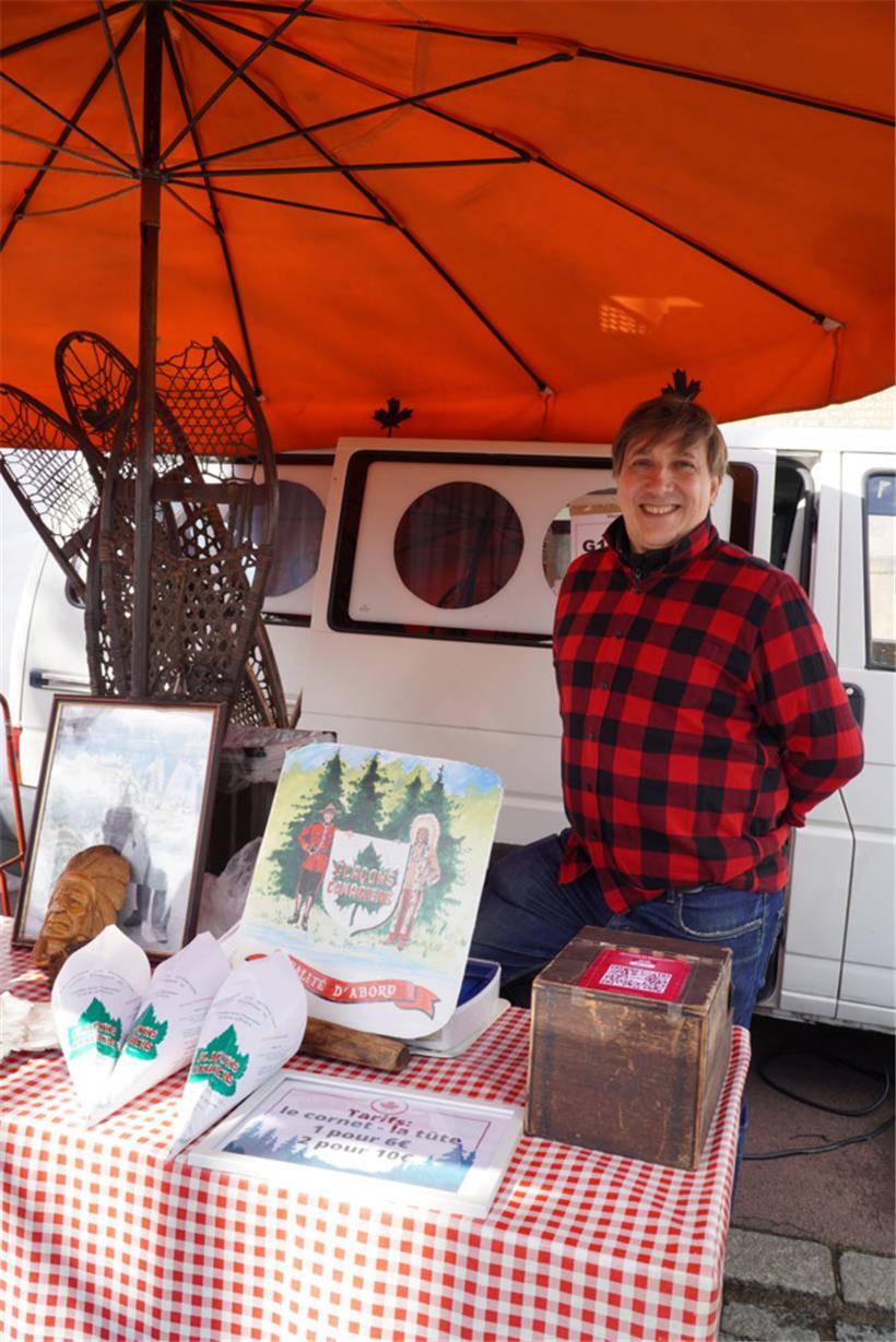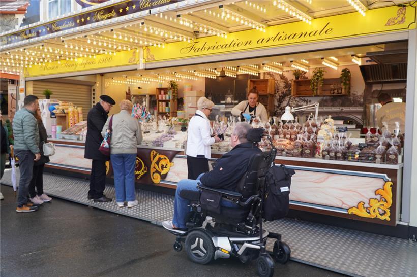 Beim Holzchalet von Jérôme Bigard trinken Besucher gemütlich ihr Bier, hören Musik und genießen die Sicht. Hier gibt es den klassischen Backfisch, den man mitnehmen oder auf der Terrasse essen kann. „Wir haben heute schon zahlreiche Gäste empfangen. Es ist bedauerlich, dass auch in diesem Jahr keine Essenszelte auf dem Knuedler sind. Jedoch hat die place de la Constitution ihren ganz eigenen Charme. Jetzt muss nur noch das Wetter mitspielen“, so Jérôme Bigard.