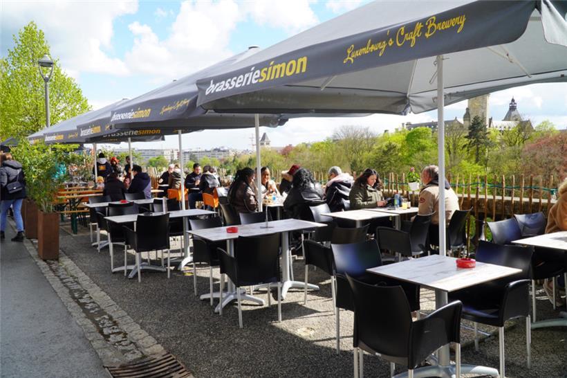 Auch wenn die Temperaturen noch zu wünschen übrig ließen, waren die Terrassen rund um die „Gëlle Fra“ gut besucht Foto: Deborah Rimi