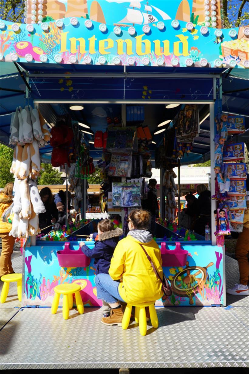 Insgesamt 44 Verkaufs-, Imbiss- und Getränkebuden reihen sich im Halbkreis um das vergoldete Mahnmal. Mehrere Terrassen wurden davor errichtet, damit die Gäste „Grillwurscht“, „Gromperekichelcher“ oder Waffeln mit Blick auf die Adolphe-Brücke genießen können. Zudem können Kinder auf Trampoline springen, eine Runde mit dem Karussell drehen oder Enten angeln.