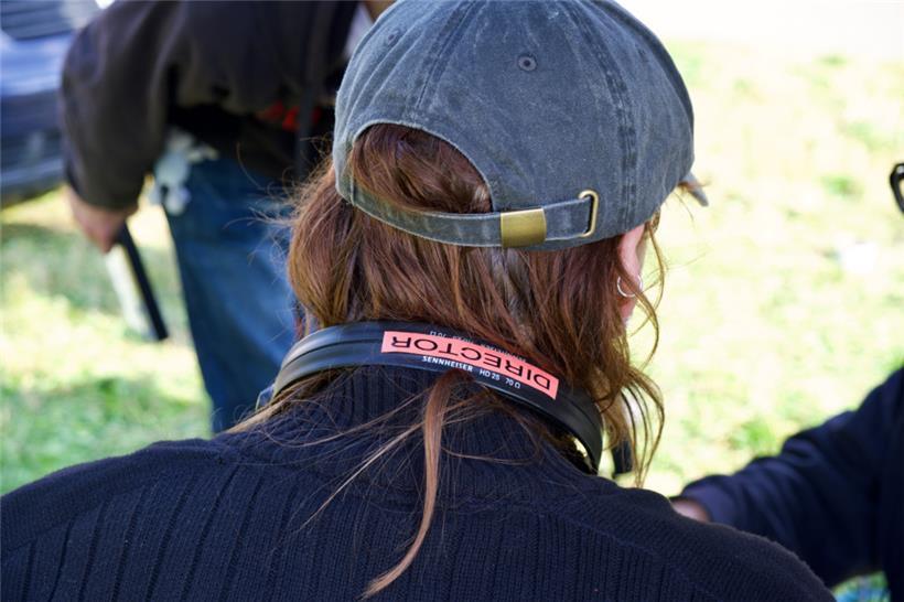 Regisseurin Céline Coutelier Schlesser steht am Rande des Sets auf einer riesigen Wiese am Waldrand. Die junge Frau wusste schon früh, dass sie etwas mit Film machen wollte. Aber Regie? Das kam erst später. „Eigentlich wollte ich Schauspielerin werden“, erzählt sie. Doch als sie 2016 oder 2017 mit ihrem Onkel zu einer Filmpremiere ging, änderte sich alles. „Das hat mich komplett gepackt. Ich wollte nicht mehr nur Teil der Geschichte sein – ich wollte die Geschichten erzählen.“