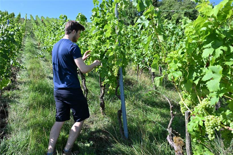 Das Freilegen der Trauben am Donnerstagmorgen war für mich der erste Einsatz in unserem Weinberg seit meinem Start als Lokal-Journalistin. Ich bin zwar weder eine große Weintrinkerin noch -kennerin, interessiere mich dennoch für den Weinbau. Wie viel Handarbeit in einer Flasche Wein steckt, ist schon bemerkenswert: Allein das Abzupfen der überschüssigen Blätter in der prallen Mittagssonne verlangt viel Geduld, Fingerspitzengefühl und Achtsamkeit. Und genau diese machte die Erfahrung zu einer zweistündigen Meditationsreise, die hin und wieder im entspannten Austausch über die Weinreben hinweg mit meiner Kollegin und meinem Kollegen pausierte. Die Arbeit an den Weinstöcken hinterließ trotz Sonnenschutzfaktor 50 ihre Spuren – ein leichter Sonnenbrand zierte im Anschluss Schultern und Arme. (Sandra Lutz)