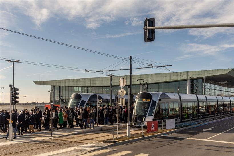 Die Tram-Linie 1 fährt ab sofort bis zum Flughafen Foto: Vincent Lescaut/L'essentiel