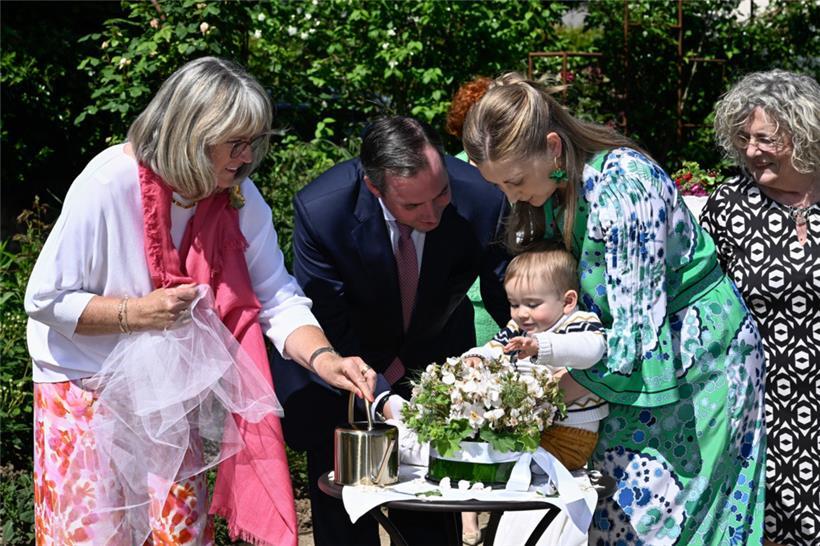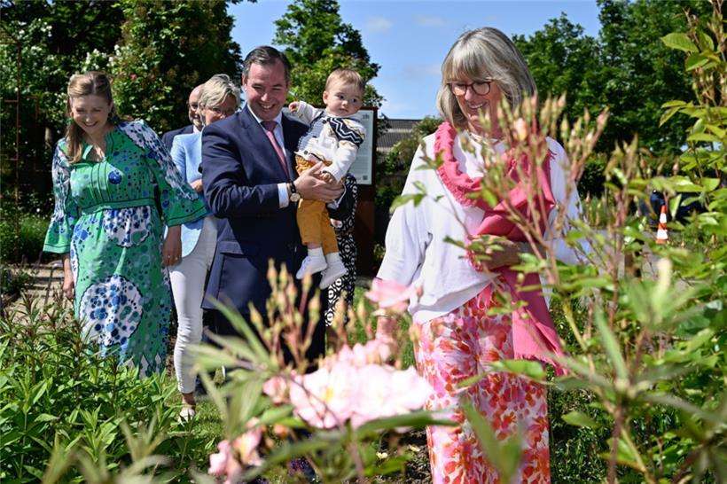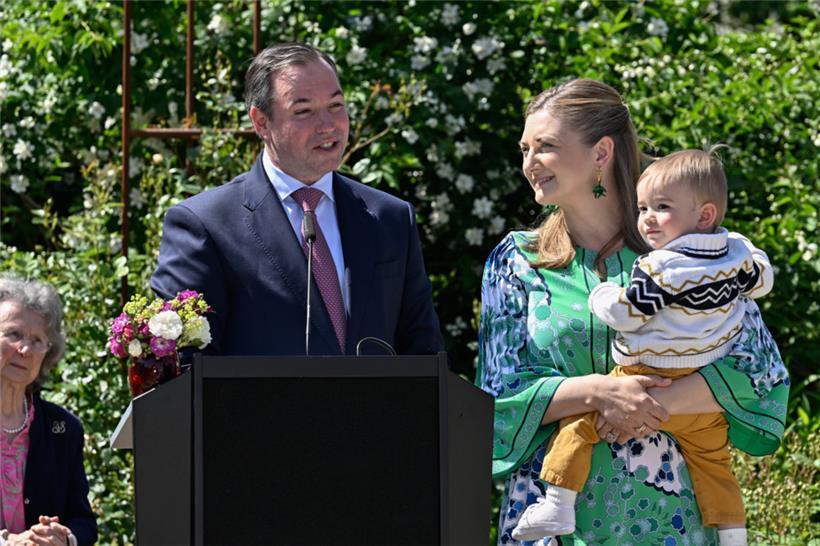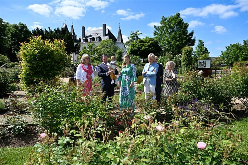Am Montag stellten die „Rousefrënn“ in der „Roseraie Château de Munsbach“ eine ganz besondere Rose vor. Sie wurde auf den Namen „Prince François de Luxembourg“ getauft. Der Erbgroßherzog und seine Gattin ließen sich diese Taufe nicht entgehen, schließlich trägt die Rose den Namen ihres jüngsten Sprosses. Offiziell wurde der Prinz im Juni 2023 auf den Namen François Henri Luis Marie Guillaume getauft. (Red.)