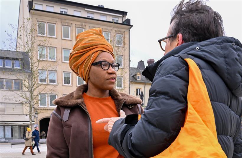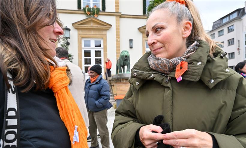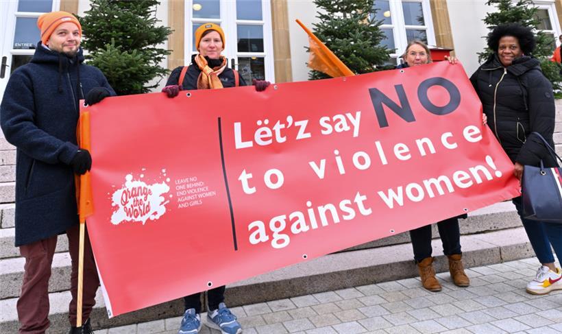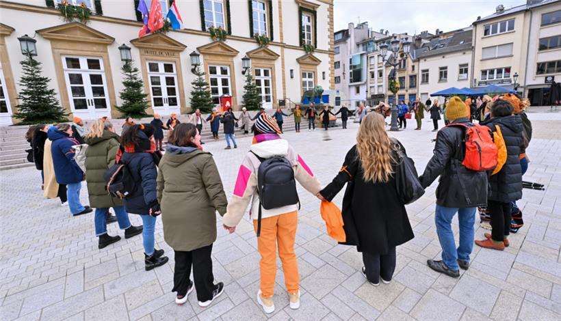 Ein Zeichen gegen Gewalt an Mädchen und Frauen setzen – das war das Ziel einer Aktion am Freitag vor dem Rathaus in Luxemburg-Stadt. Rund 50 Menschen, darunter auch einige Mitglieder des hauptstädtischen Gemeinderats, kamen zur Mittagszeit auf dem „Knuedler“ zusammen, um sich dort die Hände zu reichen und gemeinsam einen großen Kreis zu bilden. Viele von ihnen trugen orangefarbene Kleidung, Mützen oder Schals. Die Signalfarbe wird weltweit bei der sogenannten „Orange Week“ verwendet, um sich gegen alle Formen von Gewalt starkzumachen: gegen häusliche, psychische oder auch sexualisierte.