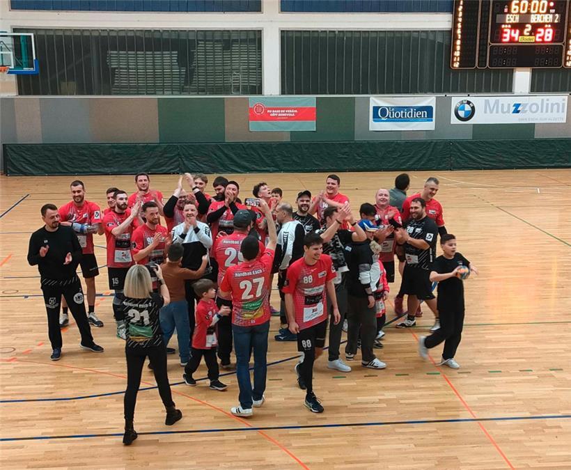 Am Samstag war es so weit: Das „Café Pirate“ feierte seinen 20. Geburtstag mit einem rauschenden Fest, an dem auch die „Lallenger Gëtter“ teilnahmen (das Tageblatt berichtete). Die hatten zuvor am Nachmittag unweit des „Pirate“ vor rund 300 Zuschauern in der Lallinger Sporthalle im Halbfinale der Coupe FLH gegen den HC Berchem 2 gewonnen. Die dritte Mannschaft des Handball Esch dominierte das Spiel gegen die favorisierten Gäste über die gesamte Spielzeit. Zur Pause führten sie mit drei Toren Differenz, schlussendlich gewannen die „Lallenger Gëtter“ mit 34:28 und stehen nun im Endspiel des Pokalwettbewerbs für Reservemannschaften, welcher im Rahmen des Final-4-Pokalwochenendes Ende April ausgetragen wird.