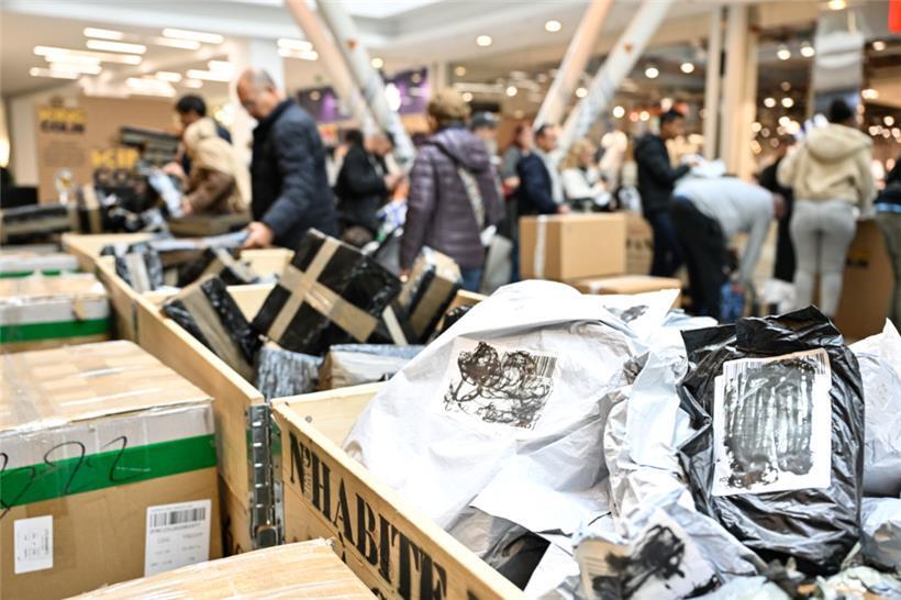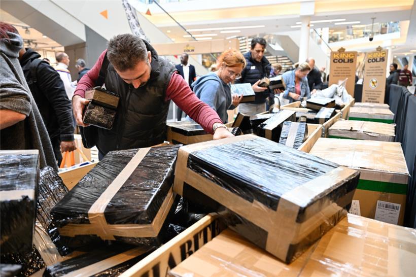 Um 10.00 Uhr hatte der Verkauf der verlorenen und nicht abgeholten Pakete begonnen. Zu dieser Zeit standen knapp 20 Kunden vor dem provisorisch eingerichteten Verkaufsstand im Erdgeschoss des Einkaufszentrums. Im Mai waren es in der Hauptstadt weit über 60 gewesen, sodass die Kunden Wartezeiten bis zu eineinhalb Stunden in Kauf nehmen mussten. „King Colis“ ist eine Firma aus Frankreich, die in den Logistikzentren nicht abgeholte Pakete aufkauft, um sie wieder zum Verkauf anzubieten. Der Clou: Der Käufer weiß nicht, was sich in den Paketen befindet, und kann den Inhalt nur versuchen, zu ertasten. 1,99 Euro kostet ein normales Paket pro 100 Gramm, 2,79 Euro pro 100 g ein Amazon-Paket. Grund für den Mehrpreis bei Amazon-Paketen ist, dass in ihnen ab und an auch Hightechware zu finden ist.