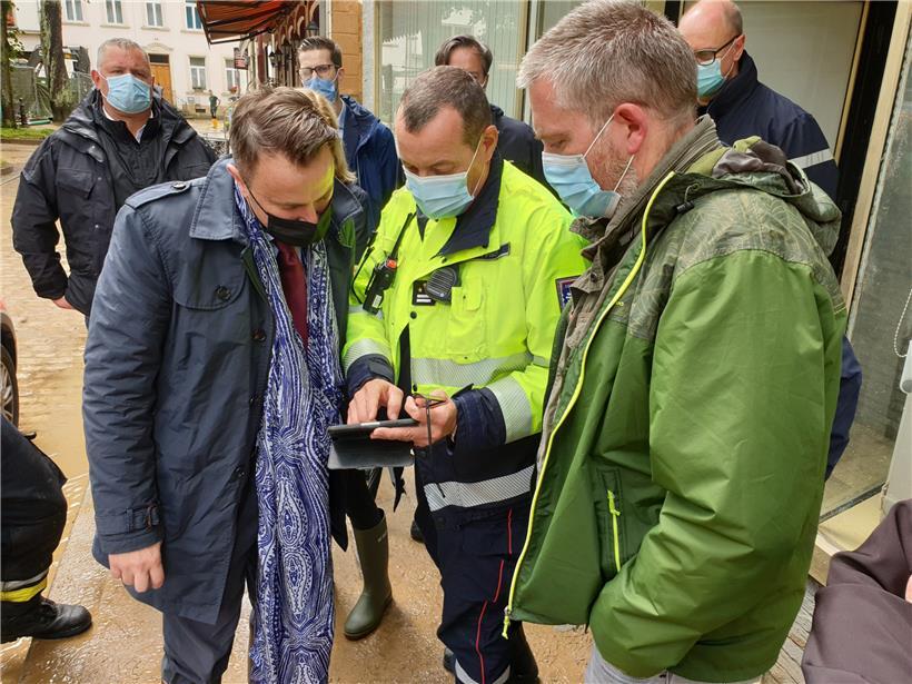Zu diesem Zeitpunkt waren die meisten Einsatzkräfte des CGDIS und Mitarbeiter der Gemeindeverwaltung bereits mehr als 20 Stunden im Einsatz: „Eigentlich sind wir seit Feierabend gestern Abend auf den Beinen“, so der Leiter des technischen Dienstes der Gemeinde Fels. „Von uns hat noch niemand ein Auge zugemacht.“ Staatsminister Bettel richtete den Mitarbeitern und Freiwilligen des CGDIS denn auch Dank und Bewunderung aus. Die Solidarität im ganzen Land habe ihm besonders imponiert, so Bettel.