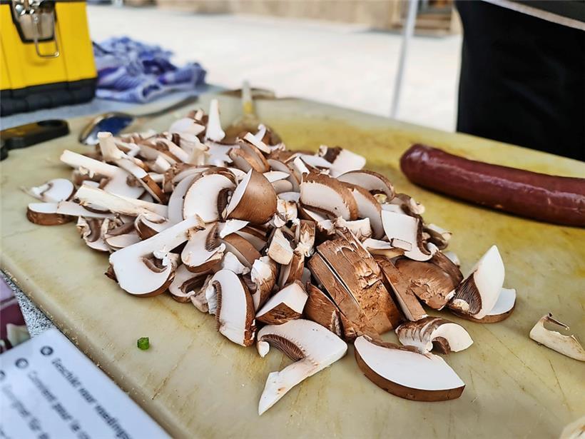 Einmal probieren bitte: René Kertz kocht ein schnelles Menü auf dem städtischen Markt Foto: André Feller
