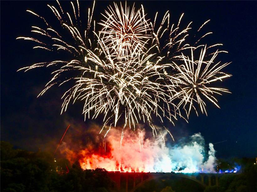 Um 23.00 Uhr knallte es dann – das Riesenfeuerwerk auf der Adolphe-Brücke wurde gezündet (Einblick hinter die Kulissen der Feuerwerker gibt es hier). Danach hieß es: Party. Die Menschenmassen feierten in den Straßen und natürlich auf dem Glacis, wo schon den ganzen Tag über DJs auflegten.