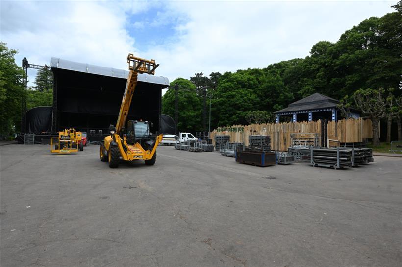 Seit einigen Tagen ist das Festivalgelände rund um den Pavillon weiträumig mit Gittern abgesperrt, auf dem Parkplatz bei den Tennisfeldern wurde ein regelrechtes Containerdorf mit Büros für das Festival aufgebaut.