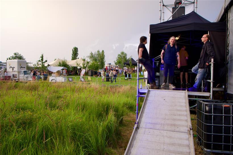 Im Backstage füllen sich langsam, aber sicher die Künstlerzelte. Hier bereiten sich unter anderem De Läb, Mutiny on the Bounty und der legendäre Mambo Schinki auf ihren Auftritt vor. Es herrscht geschäftiges Treiben, während die Künstler ihre Instrumente stimmen, letzte Absprachen treffen und ihr Equipment ordnen.