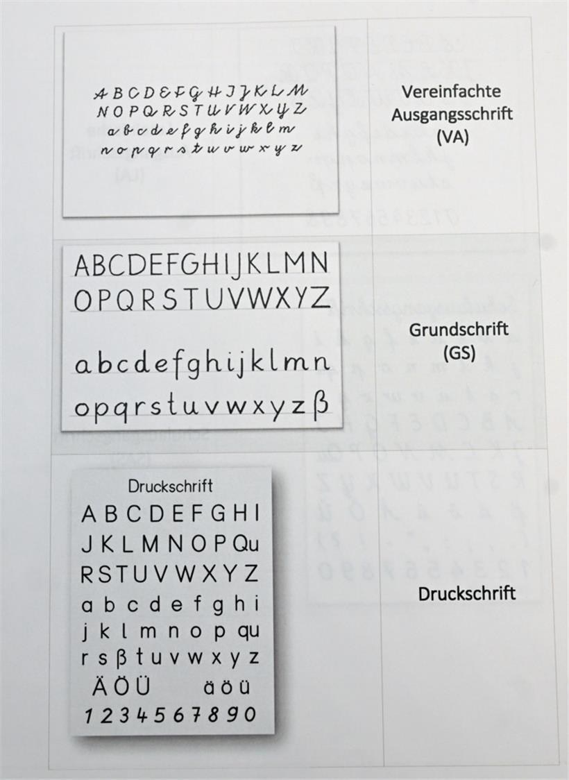 In 15 bis 20 Pilotschulen in drei Regionen des Landes wird die sogenannte Grundschrift gelehrt, die auf Druckbuchstaben basiert. „Das ist eine Mischform, die sich durchgesetzt hat“, sagt Diane Marx, „eine Druckschrift mit Häkchen.“ Sie weist darauf hin, dass in Frankreich mit Schreibschrift beginnend unterrichtet wird, während in Deutschland eine Mischform vorherrscht, bis auf ein paar Bundesländer, wo frei gewählt werden darf.