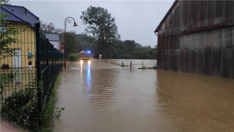 Das Unwetter hat Reckingen und Monnerich ziemlich zugesetzt. In der Nacht sind laut CGDIS in beiden Gemeinden rund 50 Feuerwehrleute, 15 Feuerwehrautos und ein Schiff im Einsatz gewesen. Foto: Editpress/Didier Sylvestre