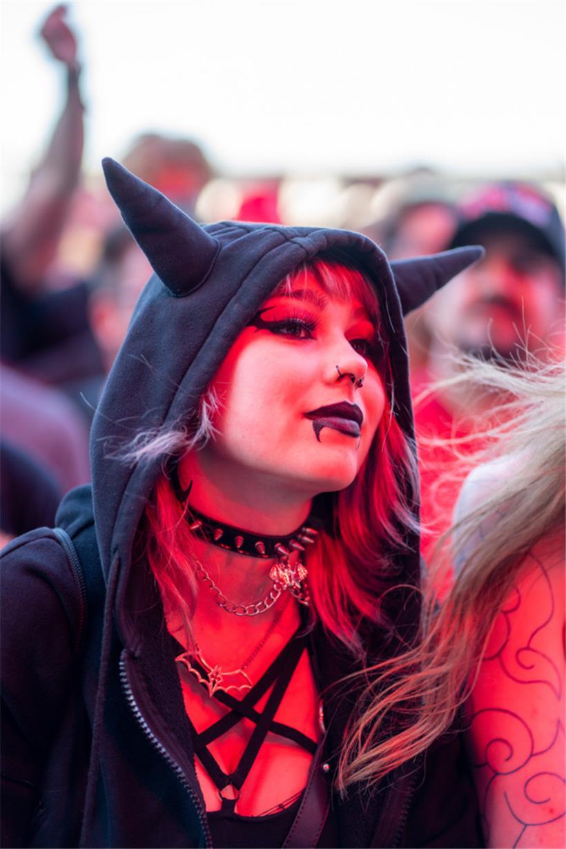 Eine Stagediverin lässt sich während des Auftritts von Yungblud vor der Hauptbühne über die Köpfe des Publikums tragen Foto: Thomas Frey/dpa
