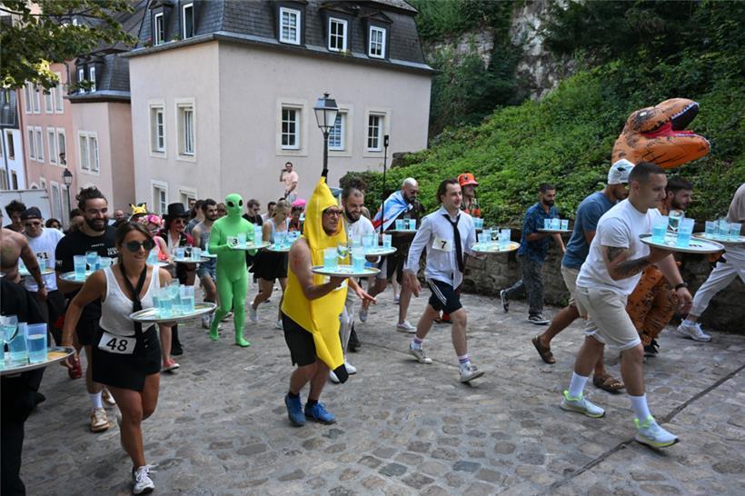 Wer glaubt, Kellnern sei kein Sport, hat noch nie beim „Waiter’s Hill Race“ mitgemacht. Der jährliche Hindernislauf, inspiriert von klassischen Café-Rennen, richtet sich an alle, die im Service gearbeitet haben, ein Tablett tragen können oder es einfach einmal ausprobieren möchten. Auch am Sonntag sind die Kellnerinnen und Kellner wieder mitten in der Hauptstadt vom Grund aus über Treppen und Kurven bis zur Oberstadt gelaufen. (les)