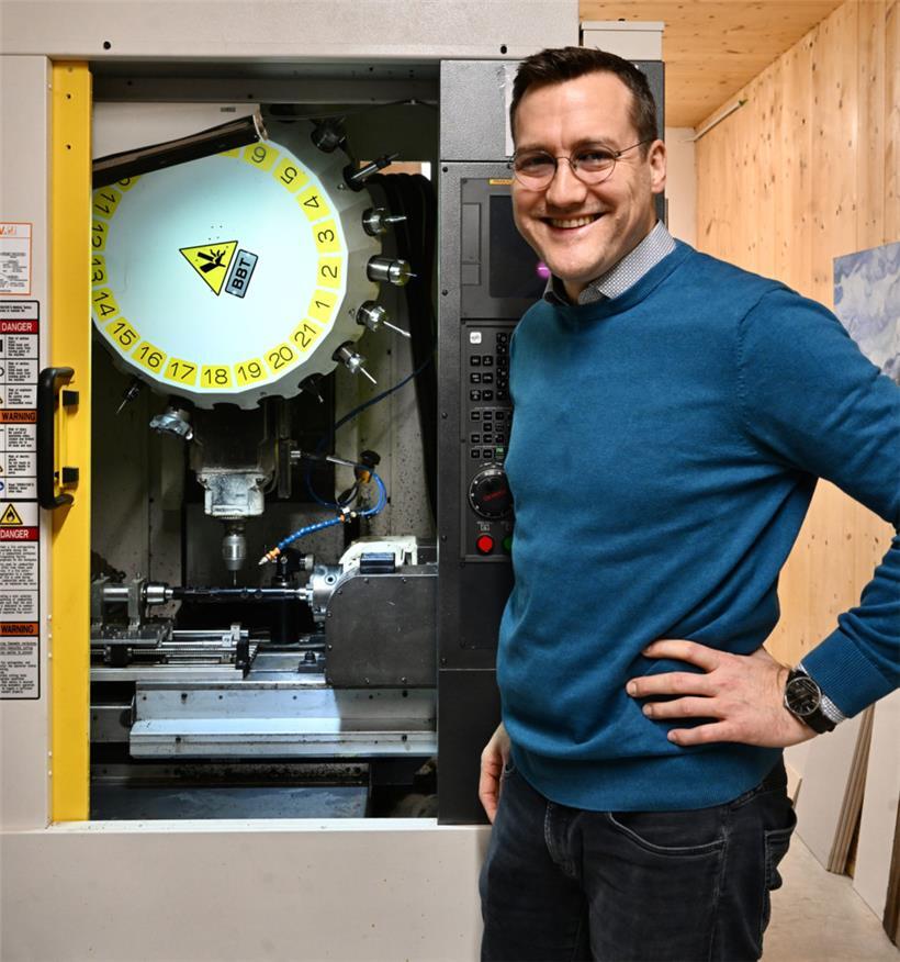 Im Arbeitsraum ist das Surren von Maschinen zu hören und überall liegen Klarinettenteile, Zangen, Bohrer. Hier eine Poliermaschine, dort ein Lasergerät. Den meisten Platz nimmt allerdings die industrielle „Rubodrill“-Fräsmaschine in der Mitte des Raums ein. Der zwei Tonnen schwere Koloss kommt in vielen Bereichen wie beispielsweise der Automobilindustrie zum Einsatz und wurde von Stephan Kronthaler sozusagen auf den Klarinettenmanufaktur-Modus getrimmt. Als Tüftler hat er selbstgebaute Teile aus Metall hinzugefügt, die ein Mund- oder anderes Stück in dem richtigen Winkel festhalten, damit anschließend die Löcher an genau den angegebenen Stellen gebohrt werden. Alles minutiöse Arbeit, bei der jedes Detail zählt. Und sie geht noch weiter, wenn nach dem maschinellen Teil beispielsweise Stücke per Hand geschliffen werden. Die Digitalisierung habe einzelne Prozesse vereinfacht, sagt Kronthaler, und eine Präzision erreicht, die von Menschenhand unmöglich wäre. Und doch sei vieles nach wie vor Handarbeit.