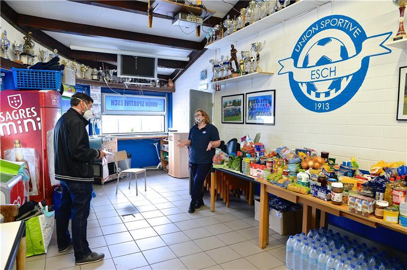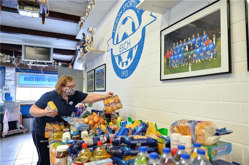 Seitdem die Aktion am vergangenen Wochenende über die sozialen Medien zirkulierte und eine Reihe von  Nicht-Klubmitgliedern ihre Hilfe anboten, ist der Rahmen der reinen Vereinsaktion endgültig gesprengt. Inzwischen wird jedem geholfen, der sich meldet und tatsächlich Hilfe braucht, sagt Cristina Faria. Als Lager für die Lebensmittelspenden dient die „Buvette“ am Fußballfeld in Lallingen, der Heimat der US. Dort steht inzwischen direkt unterhalb der imposanten Trophäensammlung ein beachtliches Lebensmittel-Lager. Faria kümmert sich darum, die einzelnen Pakete zusammenzustellen, je nach Bedarf. Vereinsmitglieder liefern sie dann aus.