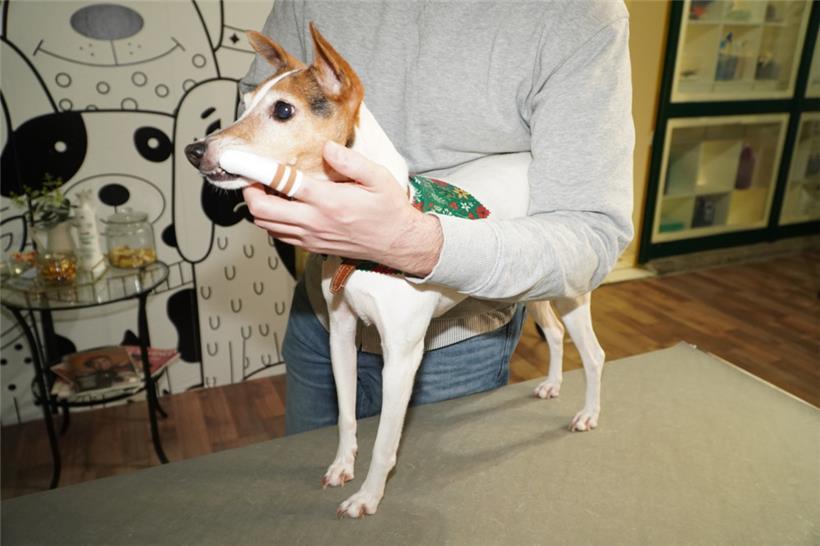 Vierbeiner sollten so früh wie möglich an Berührungen im Maul sowie an Zahnbürste und -pasta gewöhnt werden. Für eine sorgfältige Reinigung sollten die Zähne vom Zahnfleisch an Richtung Zahnspitze gebürstet werden. Die Zähne sollten immer nur leicht massiert werden. Man beginnt am besten mit der Außenseite der Reißzähne des Oberkiefers und geht dann zu den Schneidezähnen an der Vorderseite des Mauls über. Um die hinteren Backenzähne zu erreichen, muss man den Fingerling vorsichtig entlang der Wange in das Maul einführen. Den gleichen Vorgang wiederholt man am Unterkiefer. Die Reinigung der Innenseite der Zähne gestaltet sich etwas schwieriger, da Tiere ihr Gebiss automatisch öffnen und schließen.