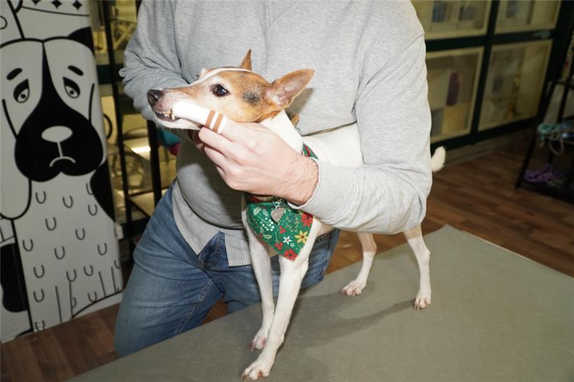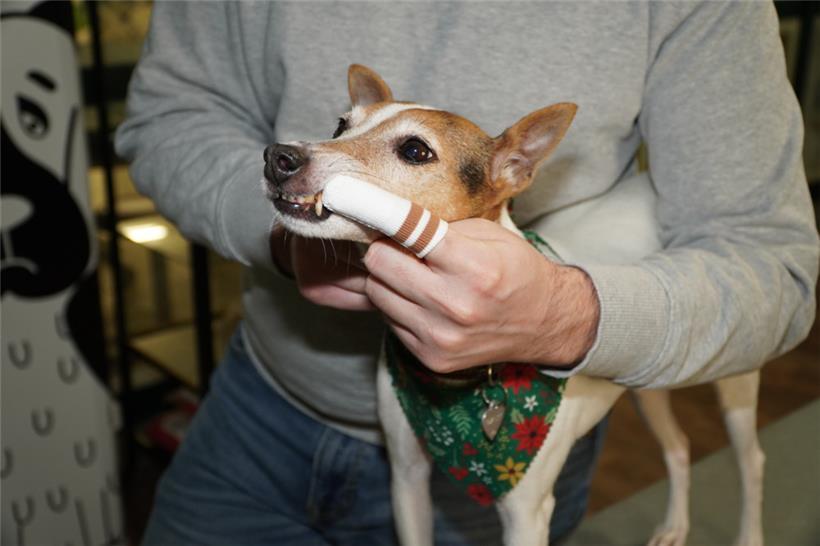 Mithilfe eines Fingerlings aus Microfleece gelingt die Zahnreinigung beim Hund sanft und schonend Foto: Deborah Rimi