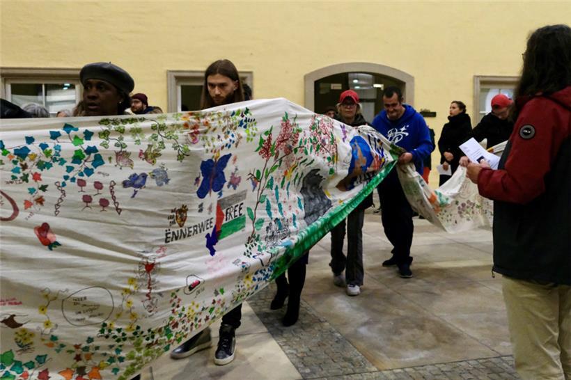 Dieses riesengroße, selbstgemalte Banner begleitete die Teilnehmer von einem Ort an den nächsten Fotos: Carole Theisen
