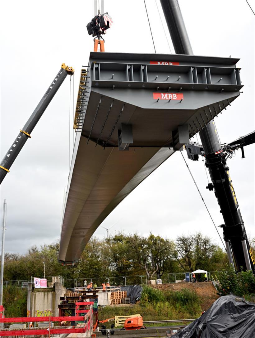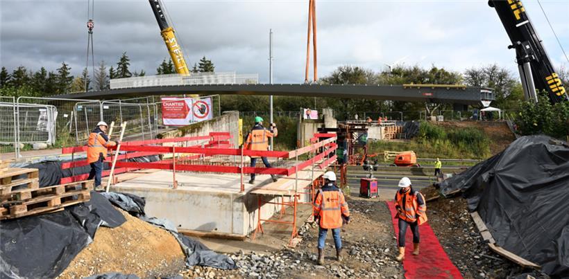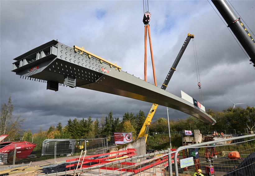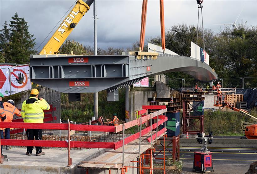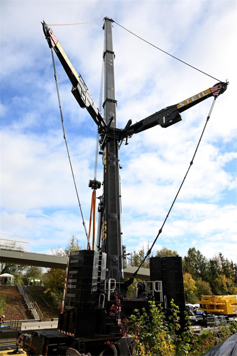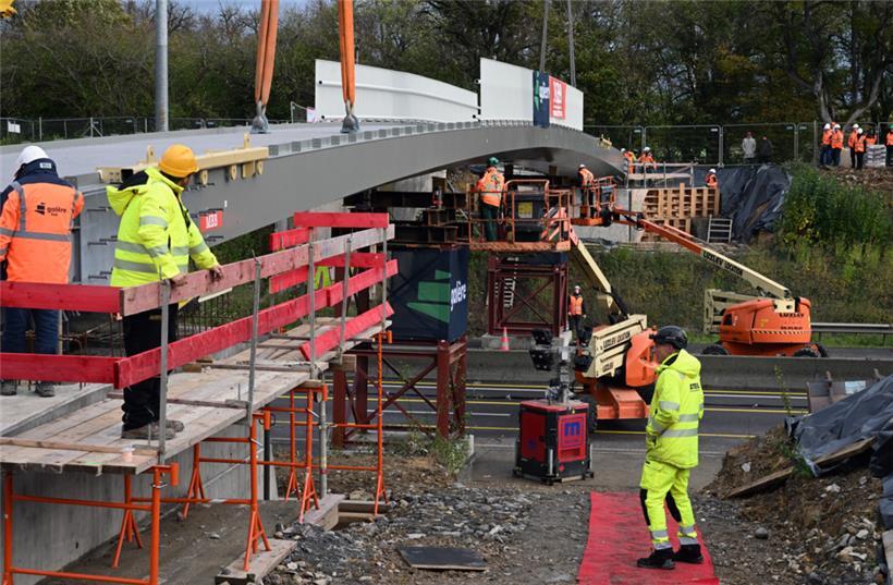 Zwei Kräne und eine geschlossene Autobahn: Neue Fußgängerbrücke installiert
