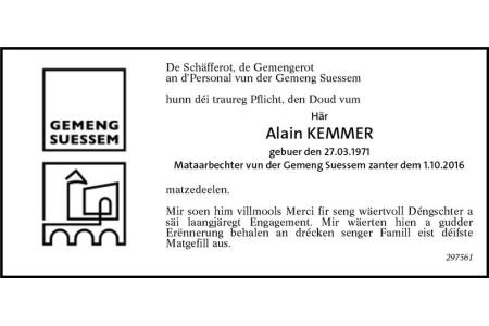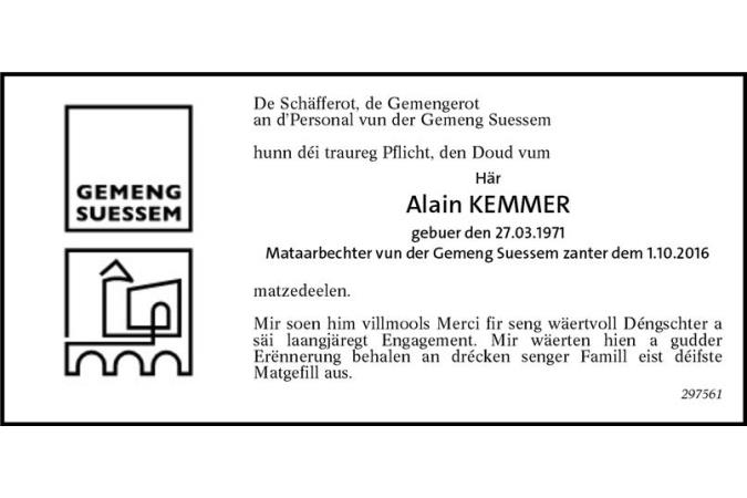 Avis mortuaire Monsieur Alain Kemmer
