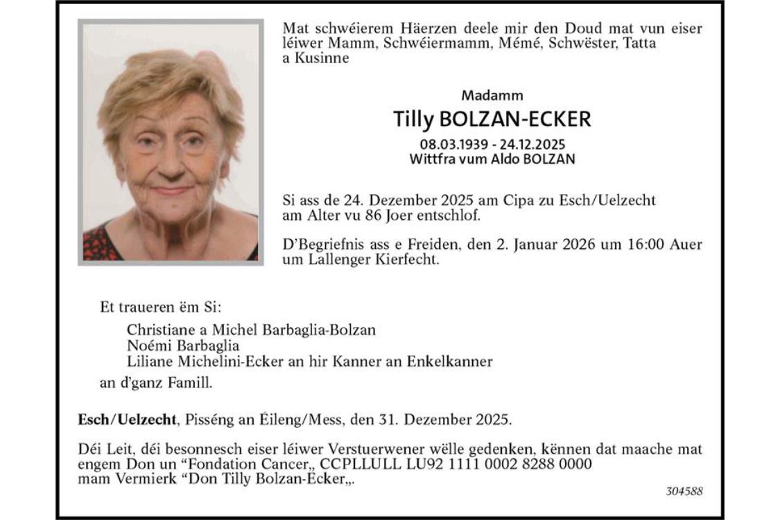 Avis mortuaire Tilly Bolzan-Ecker