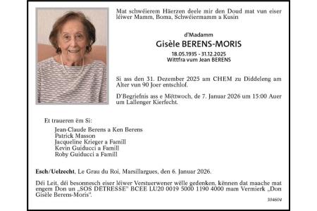 Avis mortuaire Gisèle Berens