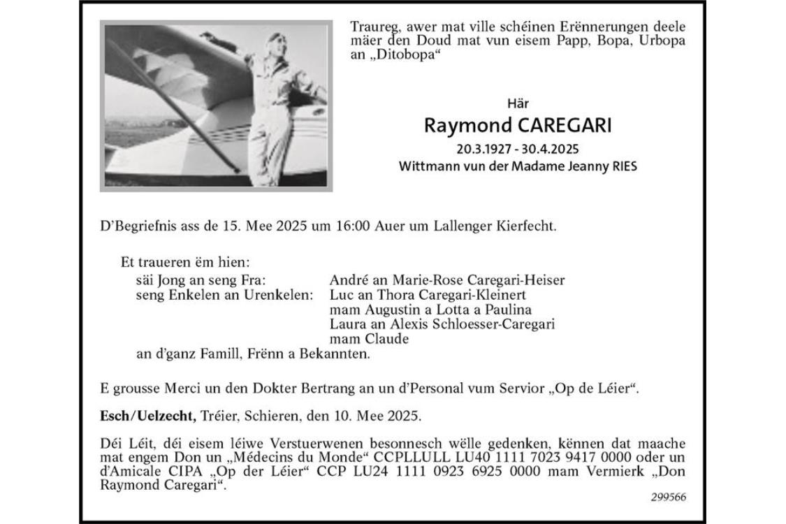 Avis mortuaire Monsieur Raymond Caregari