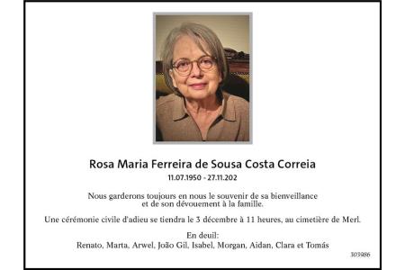 Avis mortuaire Rosa Maria Ferreira de Sousa Costa Correia