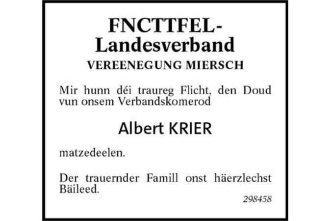 Avis mortuaire M. Albert Krier