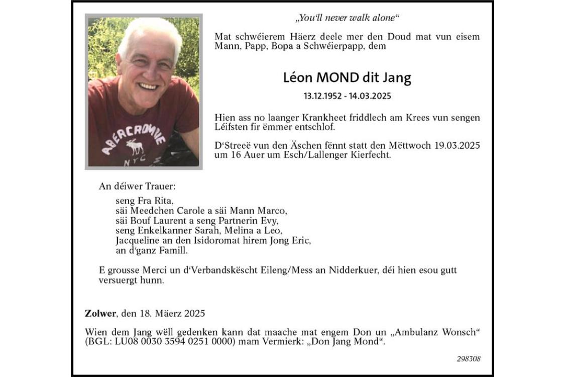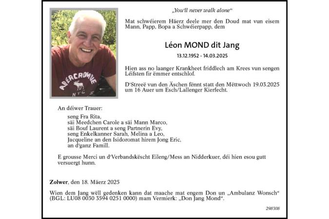 Avis mortuaire M. Léon Mond