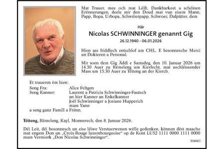 Avis mortuaire Monsieur Nicolas Schwinninger