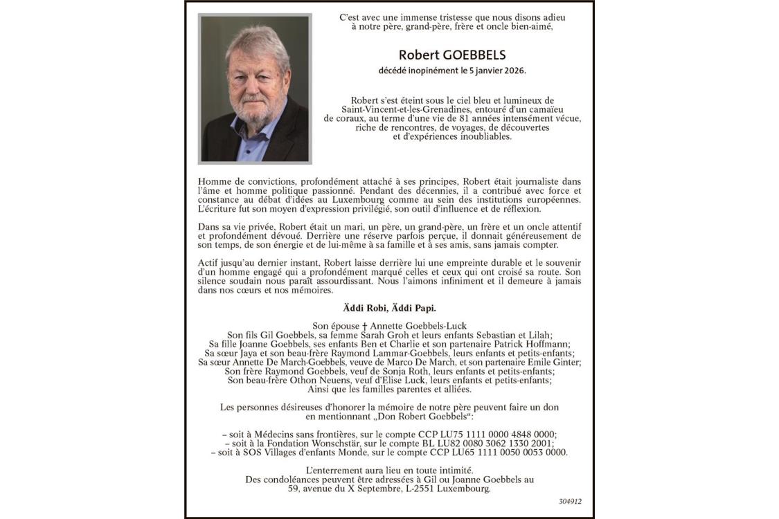 Avis mortuaire Monsieur Robert Goebbels