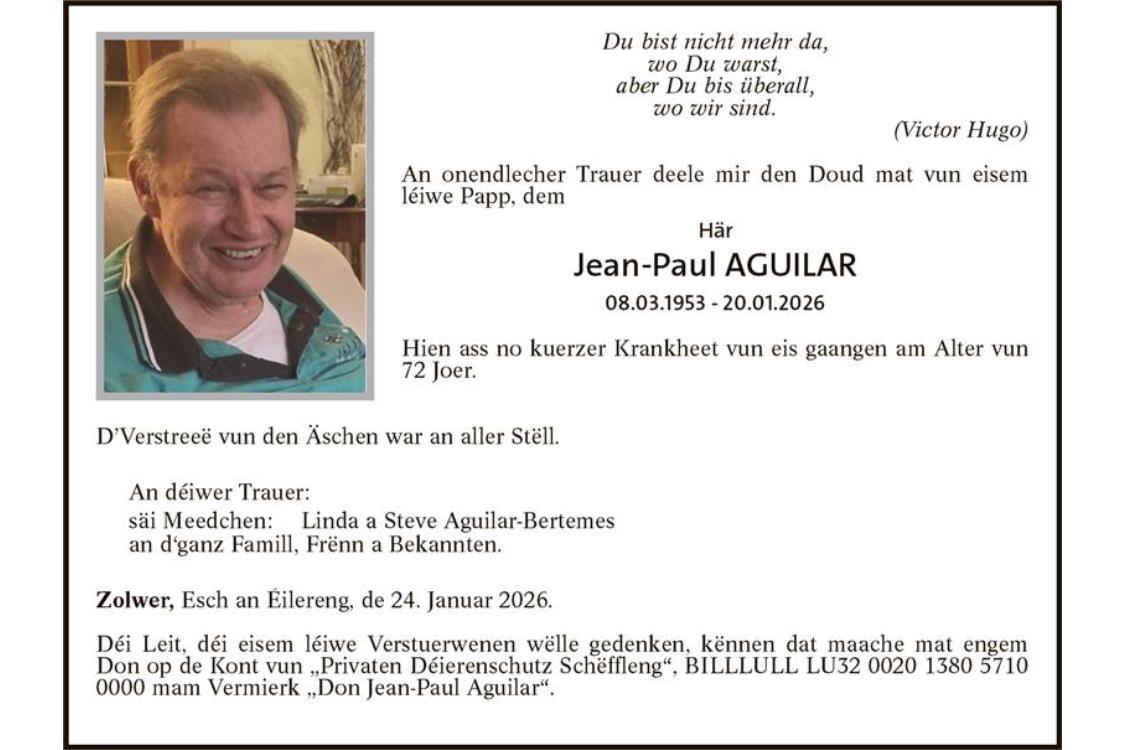 Avis mortuaire Monsieur Jean-Paul Aguilar