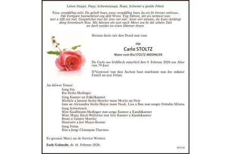 Avis mortuaire Monsieur Carlo Stoltz