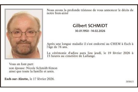 Avis mortuaire Monsieur Gilbert Schmidt