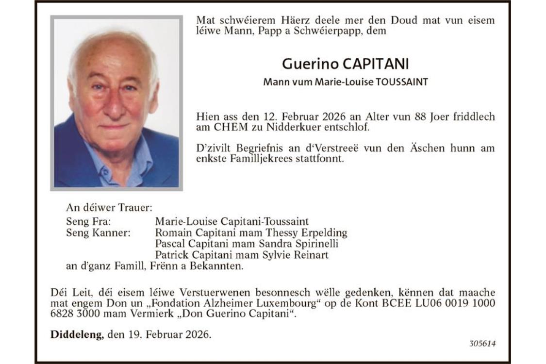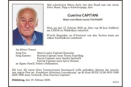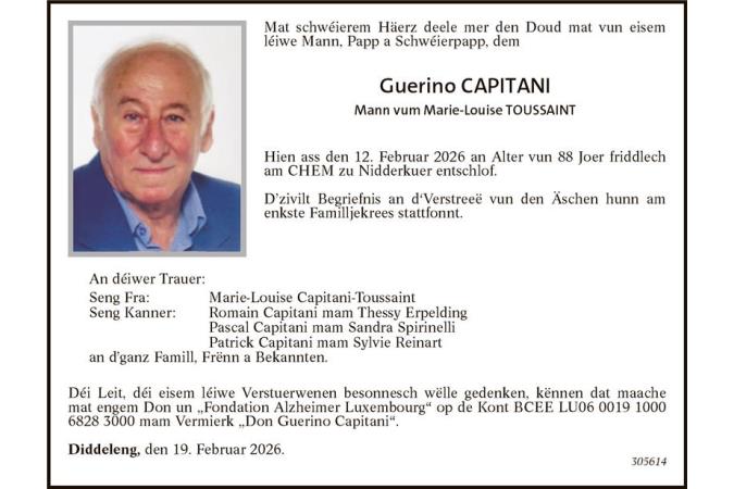Avis mortuaire Monsieur Guerino Capitani