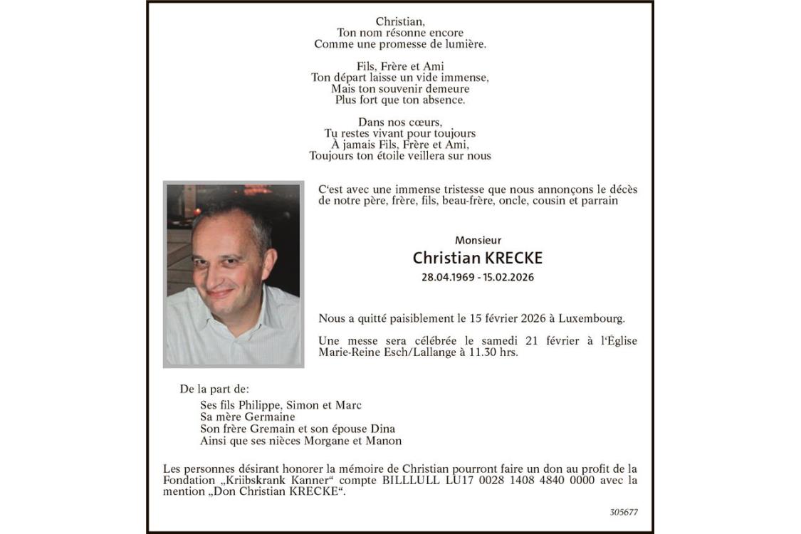 Avis mortuaire Monsieur Christian Krecke