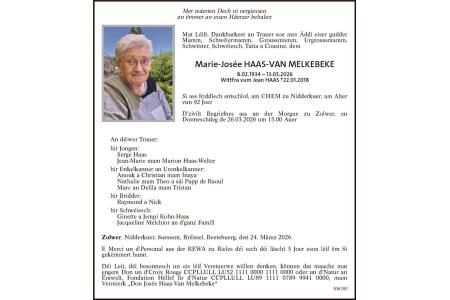 Avis mortuaire Mme Marie Josée Haas-Van Melkebeke