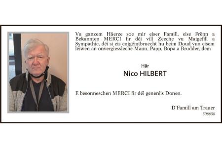 Remerciement Monsieur Nico Hilbert