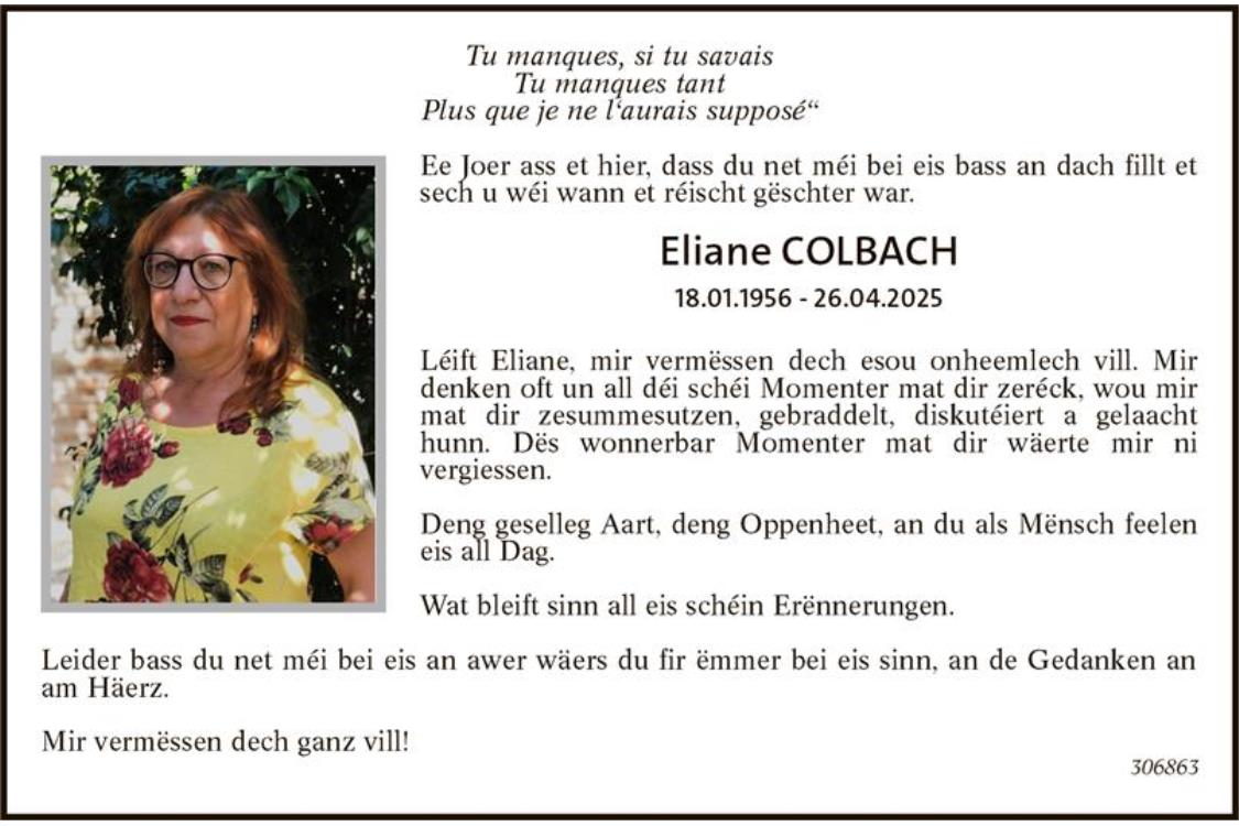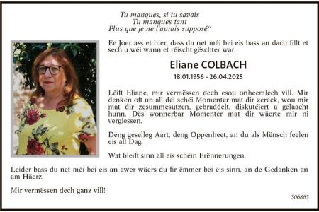 Service anniversaire Eliane Colbach