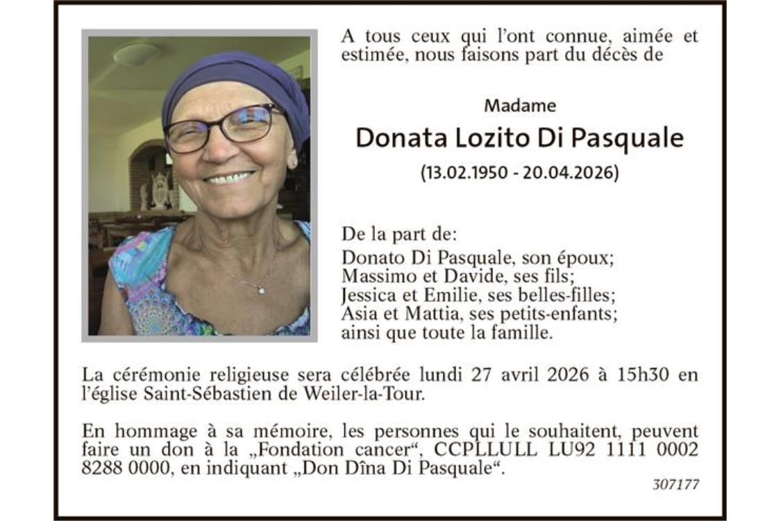 Avis mortuaire Madame Donata Lozito Di Pasquale