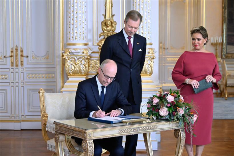Der Blick vor den städtischen Palast gegen 15 Uhr zeigt: Es haben sich einige Menschen zusammengefunden, um nach der Vereidigung dem Erbgroßherzog zuzujubeln. Der Nachmittag beginnt mit dem Unterzeichnen des „Arrêté grand-ducal“, den Erbgroßherzog Guillaume zum „Lieutenant-Représentant“ macht. Eine Rede von Premierminister Luc Frieden im städtischen Palast folgt.