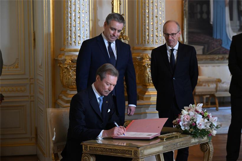Zuvor unterzeichneten der neue Premierminister Luc Frieden und Großherzuog Henri den „Procés Verbal“ zur Vereidigung der neuen Regierung im großherzoglichen Palais.