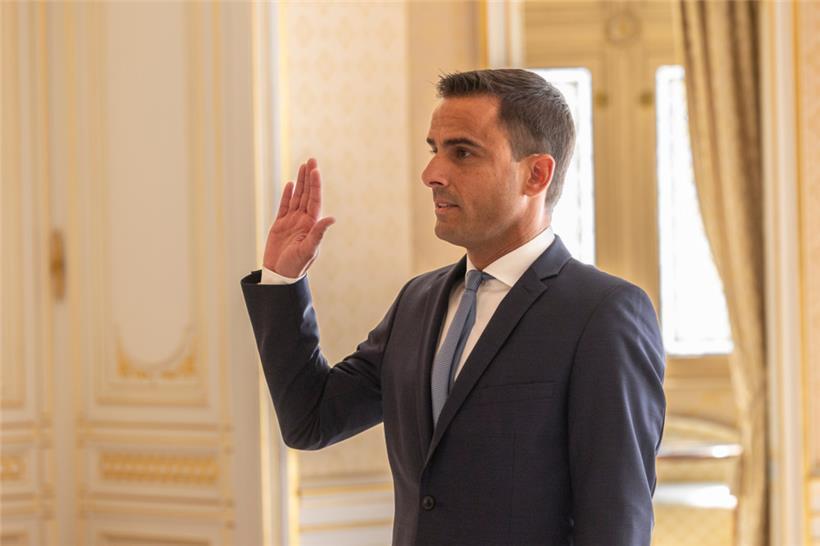 Der neue Familienminister Max Hahn (DP) wurde am Donnerstag im großherzoglichen Palast in Anwesenheit von Großherzog Henri und Premierminister Xavier Bettel (DP) vereidigt. Das, nachdem die DP am Mittwochabend bei einer Pressekonferenz in Luxemburg-Stadt bekannt gegeben hatte, dass Hahn das Familien- und Integrationsministerium sowie jenes für die Großregion übernimmt.
